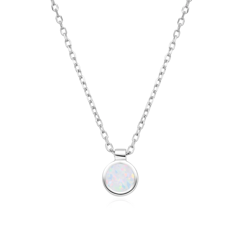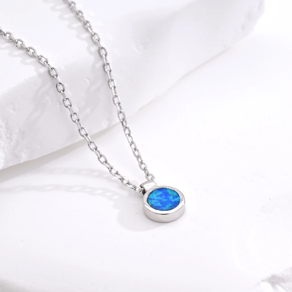 925 Sterling Silver Blue Opal Round Shaped Inlay Fine Pendant Dainty Necklace